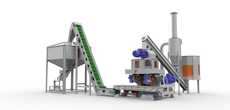 Maszyna wyposażona jest w najlepsze rozwiązanie na świecie jakie wymyślono do tej pory, tj.: w obrotową matrycę pierścieniową ustawioną w pionie. Dzięki temu surowiec naturalnie układa się równomiernie siłą odśrodkową pomiędzy rolką a matrycą, co sprawia, że jest wysoka wydajność przy niskim zużyciu prądu, a równomierna praca wyklucza częste awarie.