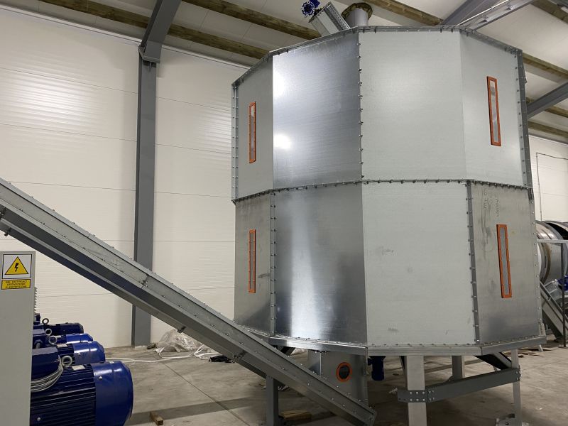 Резервуар для сухої тирси різної місткості,<br><br>Особливості/ переваги:<br>*Резервуар зібраний з модульних оцинкованих панелей - стійкий до зовнішніх умов,<br>*Можливість збільшення місткості резервуара в майбутньому,<br>*Відповідний внутрішній простір - запобігає зависанню матеріалу,<br>*Обертовий вивантажувач - дозволяє автоматично спорожнити резервуар,<br>*Можливість відкриття додаткових розвантажувальних отворів,<br>*можливість вивантаження шнековим або пневматичним транспортером,<br><br>Опціонально:<br>*Завантаження шнеком,<br>*Пневматичне завантаження напівциклонним методом - як вивантаження з-під фільтраційної станції,<br>*Пневматичне завантаження через циклон і роторний клапан,<br>*датчики наявності матеріалу,<br>