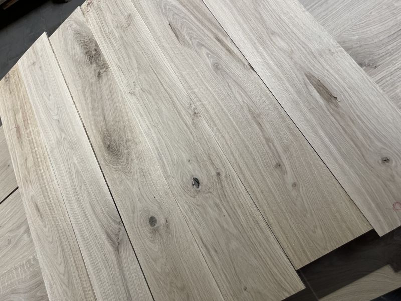 dowolnym układem słoja, wyglądem rustykalnym, naturalnym kolorem twardzieli i bieli, dopuszczalne są delikatne przebarwienia naturalne i suszarniane, sęk zdrowy do 50 mm, dziura po sęku do 20mm, pęknięcia sęka do 60mm długości, rozszczepienie do 8mm, oraz zakorki do 100mm.