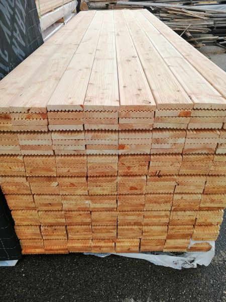 We offer grooved terrace boards made of European larch wood, dried to about 14% humidity.
