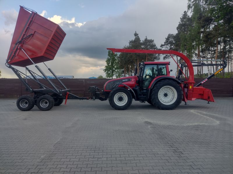 Valtra T202 z rozdrabniaczem i przyczepa wysokiego składowania