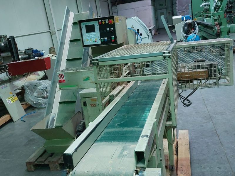 Zum Verkauf steht eine automatische Kappsäge Cursal aus dem Jahr 2009 mit Quer- und Längsvorschub sowie einem Bandempfänger für die Aufnahme von Blöcken oder anderen Werkstücken. Die Maschine schneidet Elemente auf die vorgegebene Größe zu (Materialvorschub über eine Kugelumlaufspindel, gekoppelt mit einem Schrittmotor). Der längste Block, der in den Quervorschub passt, beträgt 29 cm, ebenso die Rückfahrt des Längsvorschubs. Oberer und seitlicher Druck auf das zu schneidende Element. Maximaler Schnittmaß des Blocks: 140 x 140 mm. Sägeblattdurchmesser: 500 mm. Die Maschine arbeitet im automatischen Zyklus mit einer Taktzahl von 20/200.