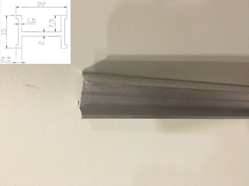 Profil o długości L = 1300 mm ze stopu aluminiowego odpornego na korozję, spawalny o specjalnym kształcie przeznaczony zwłaszcza do suszenia cienkich lameli.