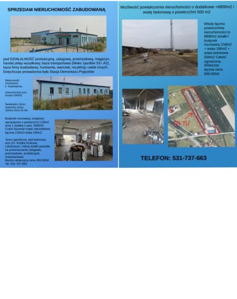 SPRZEDAM NIERUCHOMOŚĆ ZABUDOWANĄpod DZIAŁALNOŚĆ